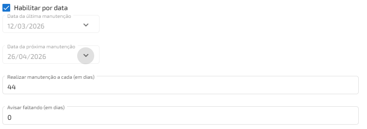 - Inserir no campo “Realizar manutenção a cada (em dias)” o número de dias entre uma revisão e outra;