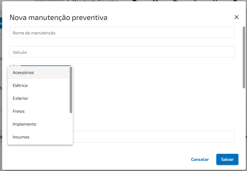 Imagem 3 - Modal "Nova manutenção preventiva"