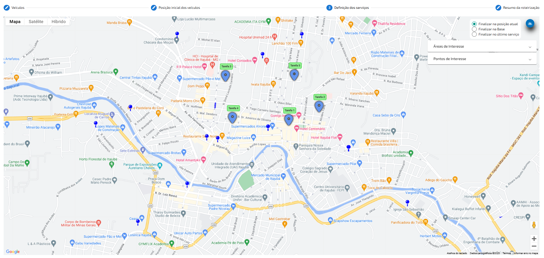 - Prioridade: O usuário pode definir a prioridade dos serviço para que seja calculado a ordem de execução da roteirização: