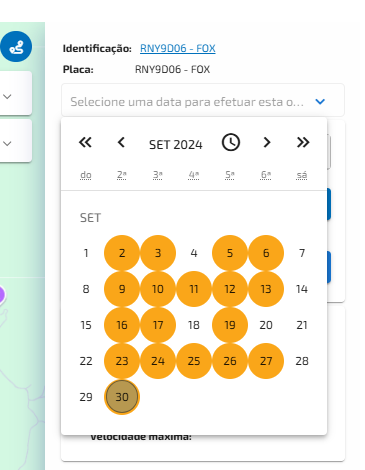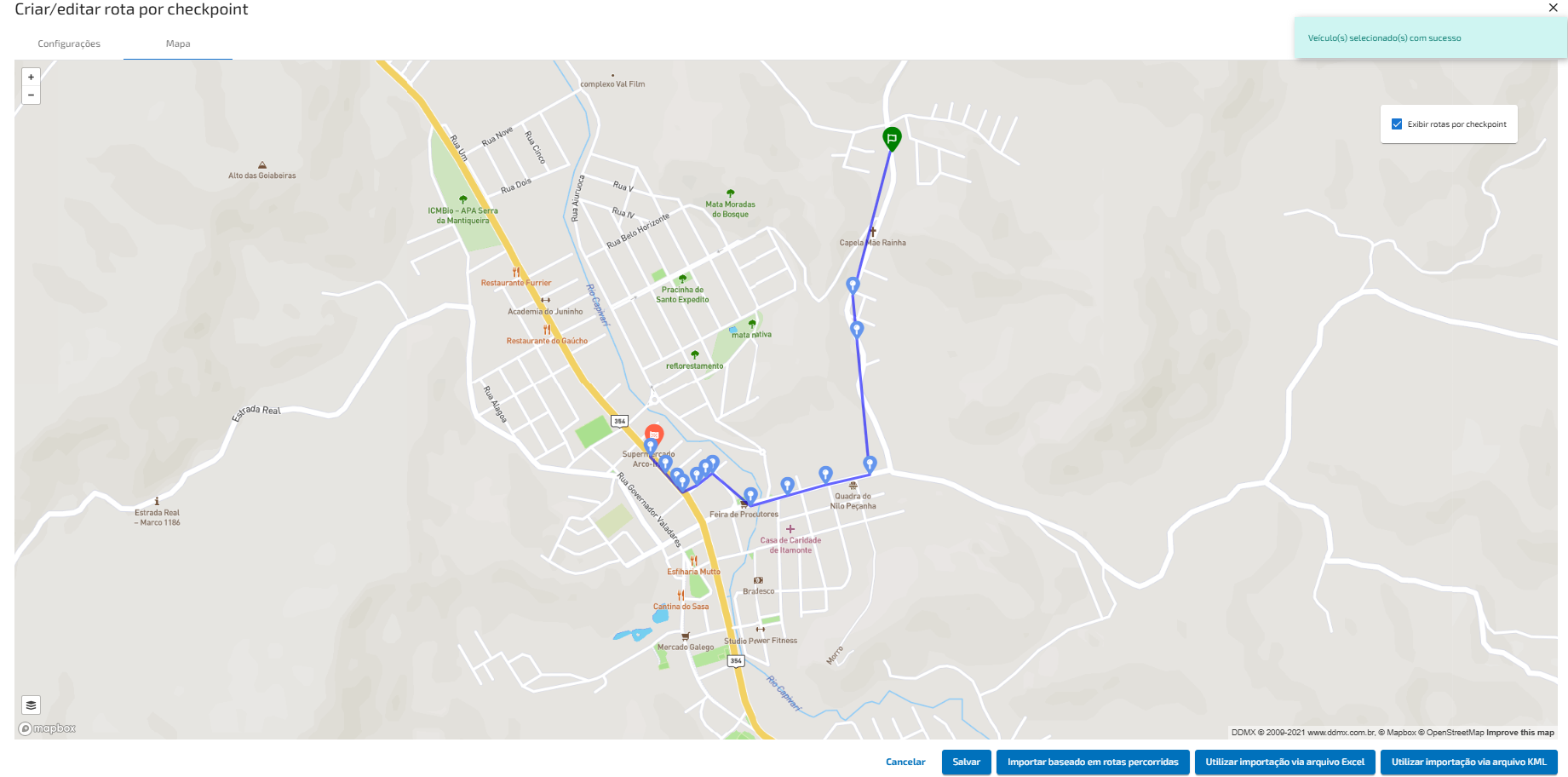 É possível também importar uma rota já realizada por um veículo, basta clicar em "Importar rota percorrida", selecionar o veículo desejado;
