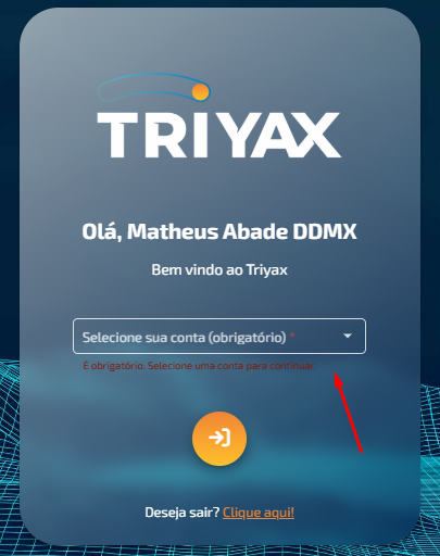 Quando o usuário acessar o Triyax, ele irá ter o usuário e senha, igual demonstrado abaixo. Basta o usuário realizar o "Login"