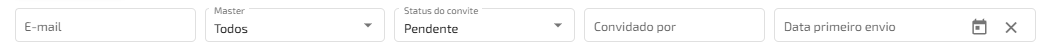 Os itens abaixo permitem que o usuário filtre os convites enviados, facilitando a busca por um usuário específico quando há muitas páginas. É possível aplicar os seguintes filtros: