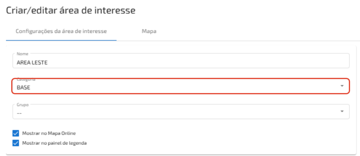 Para definir uma área como BASE, altere o campo "Categoria" da área escolhida para opção "BASE", conforme indicado na imagem abaixo:
